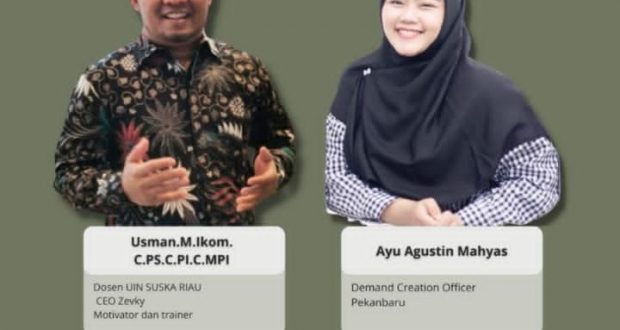 Usman M.I.Kom. Dosen UIN Suska Riau.sebagai Narasumber dengan Tema “Menjadi pemenang diatas panggung melalui skil public speaking” menyampaikan begitu pentingnya miliki skil public speaking di usia muda dan menjadi kesempatan emas untuk mengasah kemampuan agar mahir berpublic speaking.