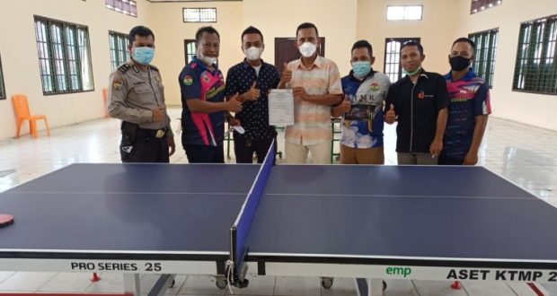 PT EMP Beri Bantuan Satu Unit Lapangan Tenis Meja ke KTMP Pelalawan